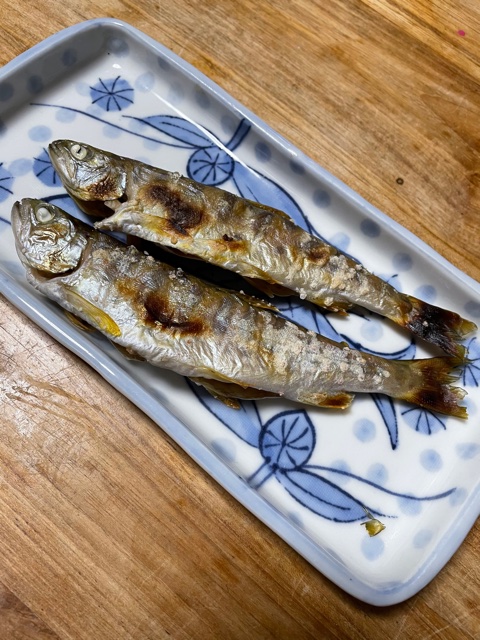 釣れたヤマメを持って帰って、塩焼きにしてみました。