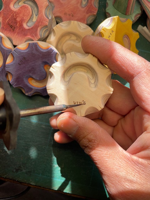 VIN’Sの文字を焼きながら書いていきます。